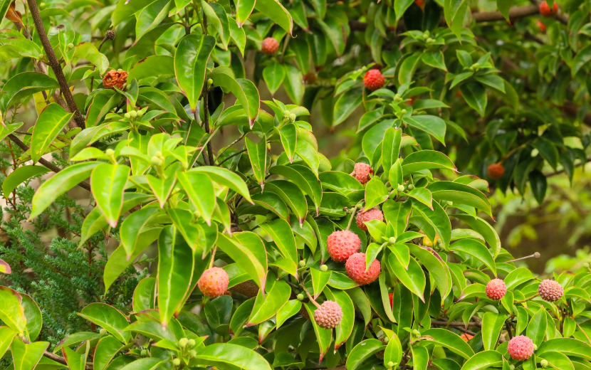 この日は秋の薔薇がちょうど満開。ヤマボウシの赤い実にも出会いました。いつもの花々とはまた違う、やさしい色合いが印象的です。ヤマボウシの実は食べられるそうで、ジャムや果実酒にもできるとか。味はマンゴーやバナナのようだと聞き、思わず「それは気になる!」と興味津々。
