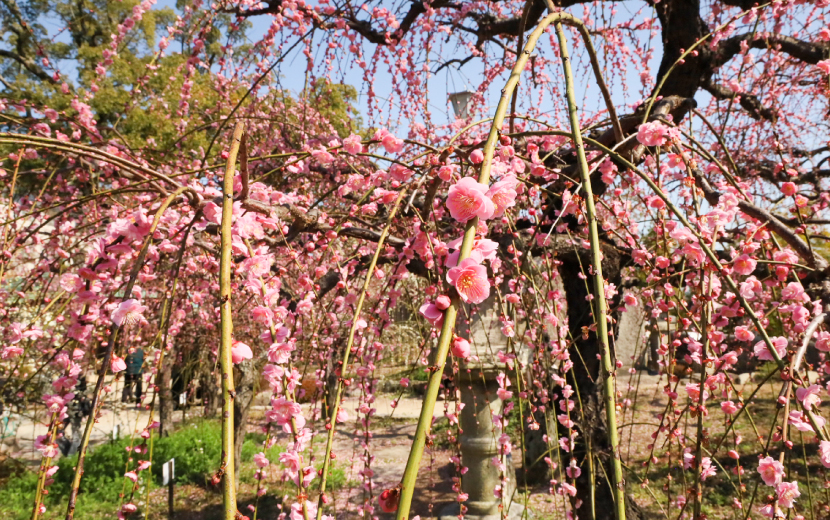 梅が満開と聞くと、足が向くのはいつもここ。もう何年通っているのか思い出せないほど前から、変わらず訪れている場所です。見事な枝垂れ梅に、そのたびに心を奪われる。今年も青い空の下、やわらかく揺れる梅の花を写真に収めることができました。
