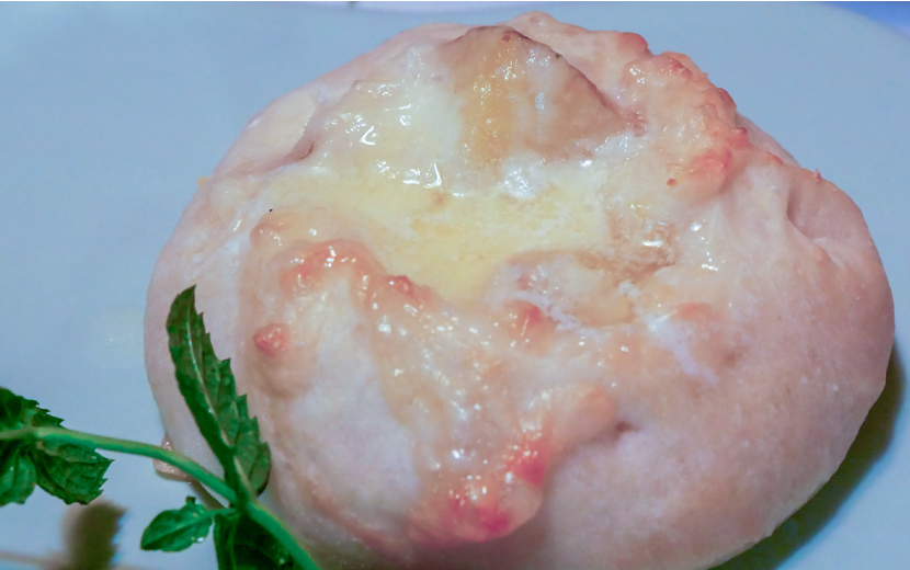 ③生地を8等分にして丸める。ひとつを平たく伸ばし、中央にじゃがいもをのせて包み込み、しっかり閉じる。